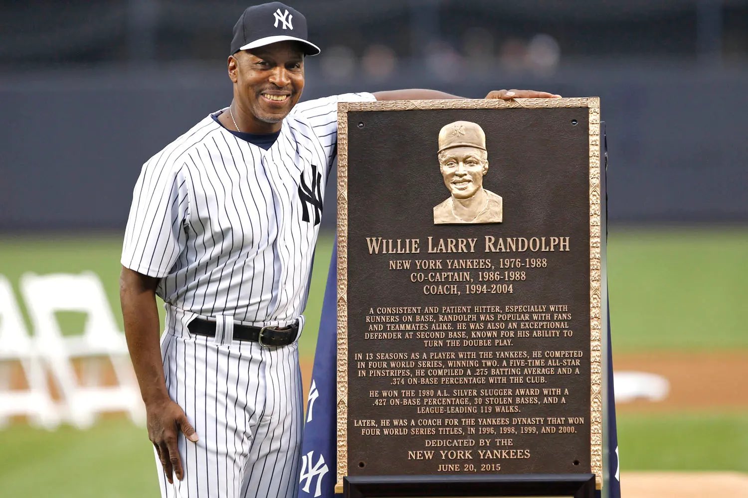 The ceremony began with Willie Randolph being honored with a Plaque in Monument Park. I'm not going to put the text here; instead, I'm going to make up a separate page that shows the Monuments and Plaques.